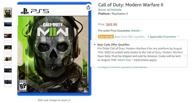 A Amazon agora está dizendo que enviará códigos de acesso beta do Modern Warfare 2 para clientes de pré-venda do PS4 e PS5 em 15 de agosto.