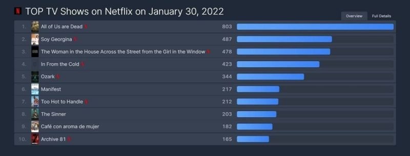 De acordo com ‘Flix Patrol’, um site de agregação de conteúdo de streaming online, ‘All of Us Are Dead’ ficou em primeiro lugar no mundo da Netflix no dia 30.