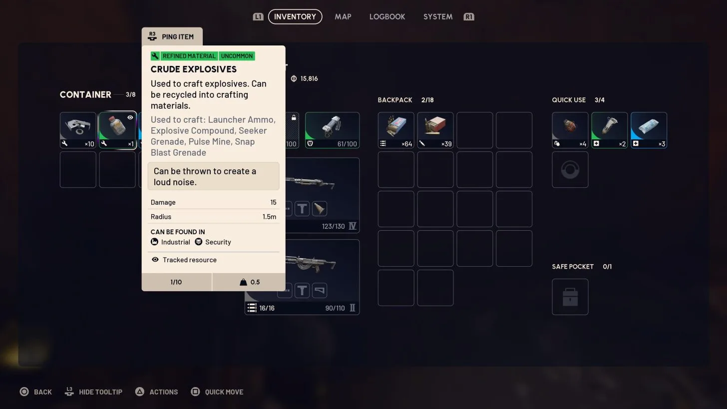 No começo, coletar tudo o que aparece parece vantajoso. No entanto, o espaço da mochila acaba rapidamente e apenas um slot garante a segurança de um item.