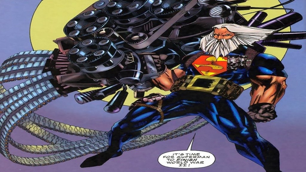 Imagine um Superman velho, num mundo pós-apocalíptico, enfrentando homens-morcegos mutantes, ciborgues assassinos e clones de Adolf Hitler (!) que querem dominar o planeta com DNA do Batman. Ah, e ele lidera um exército de crianças-soldado. No final, há um enterro com discurso antiarmas e Batman em chamas. Sim, é tão insano quanto parece — e impossível de ignorar.