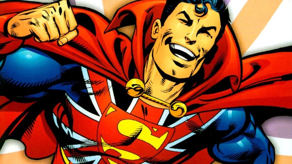 Em vez de cair no Kansas, o foguete de Kal-El chega à Inglaterra. Ele vira Colin Clark, um cidadão que evita usar seus poderes para não incomodar os vizinhos (!). Trabalha num jornal sensacionalista e monta um traje com a bandeira britânica. Escrita por John Cleese (sim, o do Monty Python), essa história satiriza os estereótipos britânicos com muito humor e exagero. Só o visual já garante seu lugar na lista.
