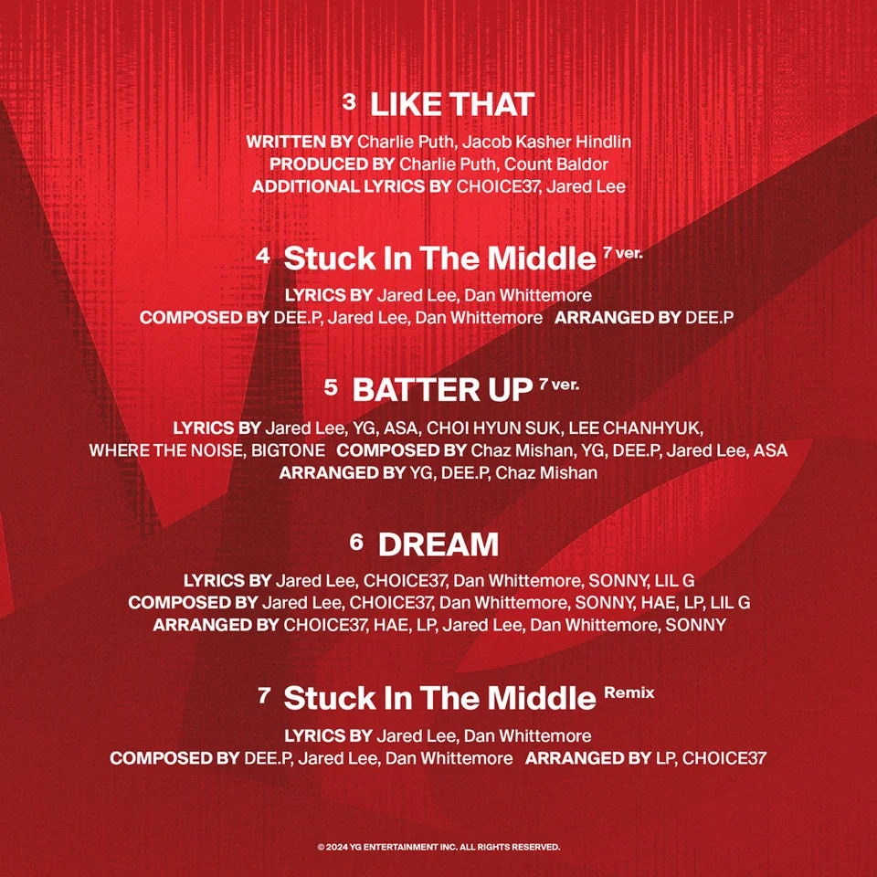 O próximo mini-álbum inclui as faixas “MONSTERS”, “SHEESH”, “LIKE THAT”, “Stuck In The Middle”, “BATTER UP”, “DREAM”, e “Stuck in the Middle (remix).