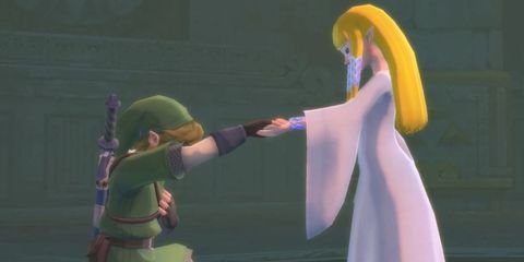 Apesar de ter sido lançado em 2011, The Legend of Zelda: Skyward Swordmostra a versão mais antiga de Link e Zelda após a criação de Skyloft. Perdidas no tempo, as origens de Skyloft e a terra abaixo das nuvens existem sem o conhecimento das pessoas acima. Assim como Hylia pretendia séculos antes, ela reencarnou como uma mortal, Zelda. Ignorante de sua vida passada como a Deusa Hylia, Zelda vive uma vida normal em Skyloft com seu amigo Link. Só quando um tornado, provocado pelo Lorde Demônio Ghirahim, faz com que Zelda caia do céu e chegue à superfície. Na superfície, Zelda se encontra com uma velha em frente ao Templo Selado. Esta mulher revela o destino de Zelda como uma reencarnação da Deusa Hylia e explica que Link é o herói escolhido. Enquanto isso, enquanto Link busca o resgate de Zelda, ele também aprende sobre a Superfície e seu destino para derrotar Demise. Reivindicando o poder da Espada Mestra, Link passa por muitas provações e tribulações para obter a Triforce e deseja o fim de Demise. Depois de uma vitória de curta duração,Zelda é apreendida e trazida ao passado. Ghirahim pretende alterar a destruição de Demise usando o poder de Zelda para libertá-lo no passado. Isso resulta em uma batalha final entre Link e Demise, onde Demise é selado dentro da Master Sword.
