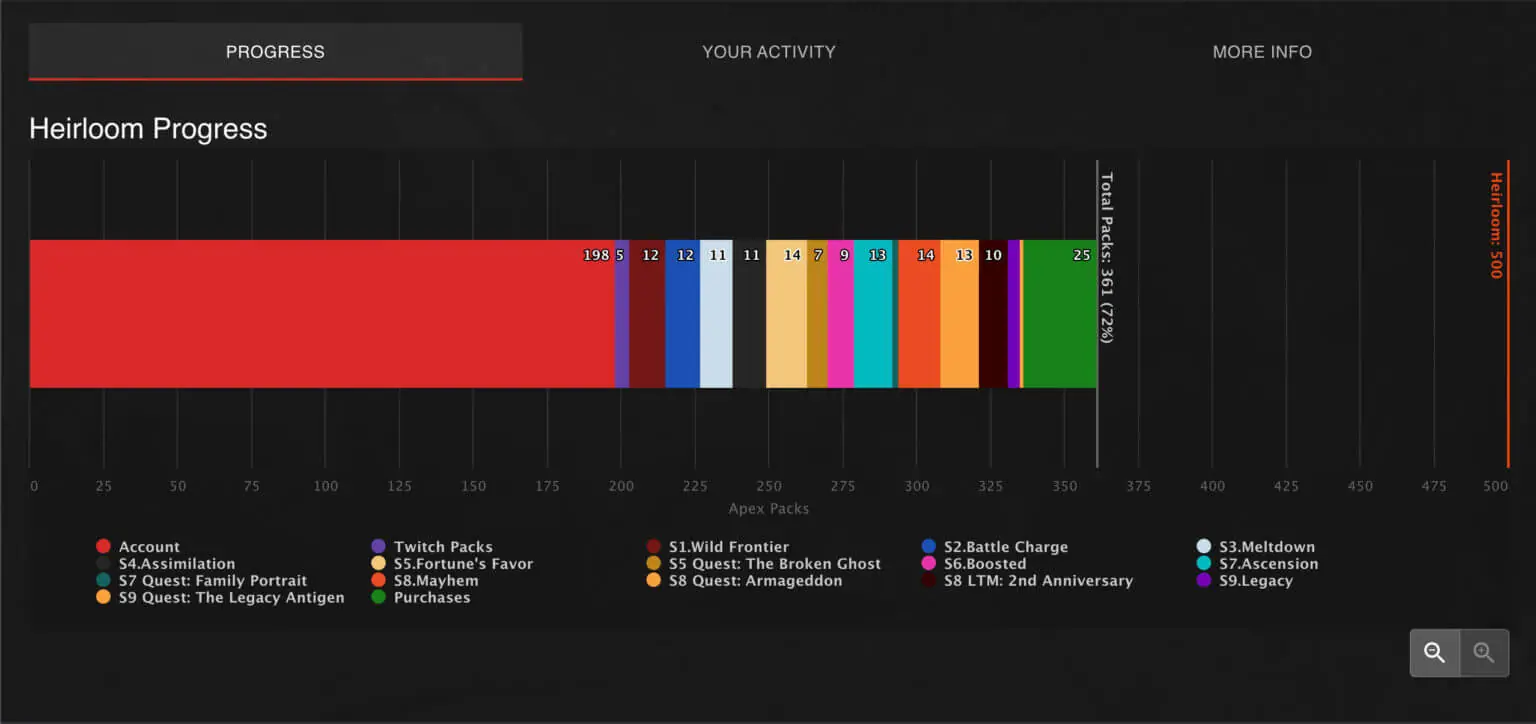 Ao calcular seu nível alcançado no passe de batalha de cada temporada, pacotes de tesouros diários coletados e pacotes de eventos recebidos, o site da Calculadora de Pacotes Apex pode estimar aproximadamente quantos pacotes você abriu. Portanto, quantos você está fora antes de receber seus fragmentos de herança no 500º.Lembre-se de que você pode ter que estimar algumas categorias, como quantos pacotes você comprou ou quantos pacotes de tesouros você coletou nas temporadas anteriores. No entanto, mesmo com estimativas aproximadas dessas categorias, você ainda deve ter uma boa ideia de quantos pacotes você abriu.Você pode obter uma estimativa ainda melhor verificando as estatísticas da sua conta para cada temporada no menu do lobby clicando em seu nome. Isso lhe dará um detalhamento do seu nível alcançado a cada temporada e tornará a Calculadora de Pacotes Apex mais precisa em relação ao número de pacotes sazonais que você abriu.