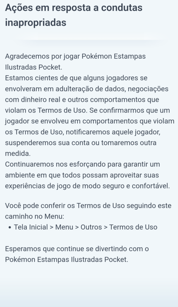 O Pokémon TCG Pocket está reprimindo usuários que violam seus Termos de Uso, como vender contas de Nível de Jogador 50, farmar Pacotes de Deus e outras ações lucrativas.