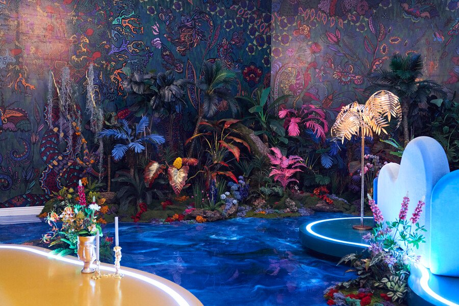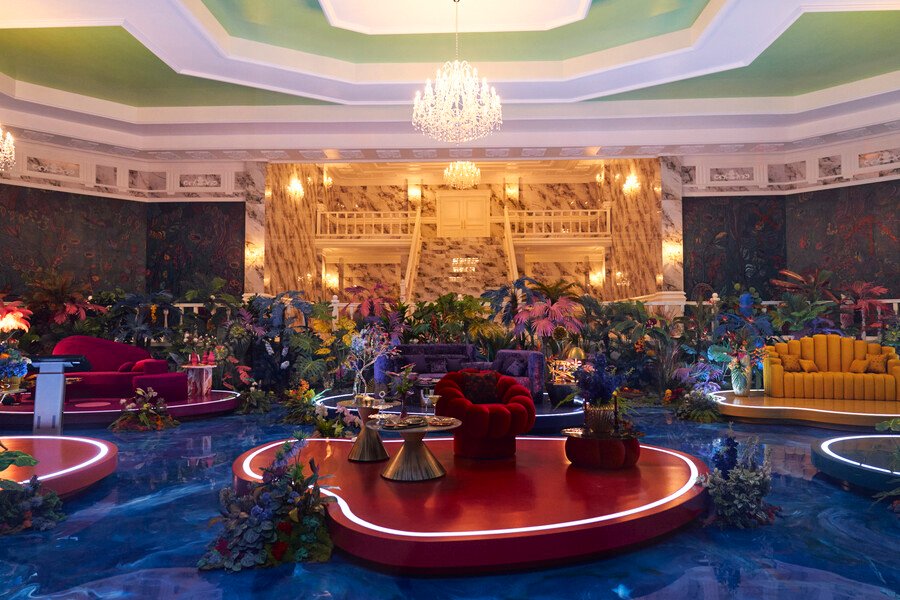 A sala de jantar dos VIPs foi desenhada em formato hexagonal, para transmitir solidez e uma sensação mística. Essa ambientação reforça a diferença brutal entre o luxo dos observadores e o sofrimento dos jogadores.