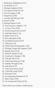 Como pudemos notar, os últimos trailer e teases contaram com músicas já consagradas de grandes artistas como The Weeknd e Guns N’ Roses para Ms. Marvel e Thor: Amor e Trovão, respectivamente. Mas segundo a trilha sonora vazada todas as músicas para Doutor Estranho no Multiverso da Loucura serão originais.