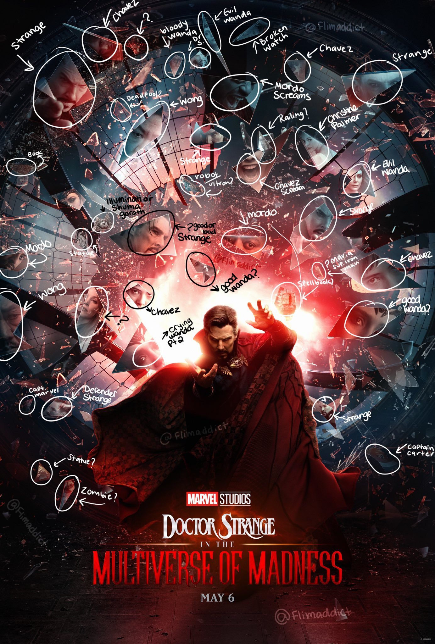 No poster, podemos ver diversas aparições do Doutor Estranho, Mordo, Wanda, Wong que estão no trailer. mas também vemos outros personagens que supostamente estão na trama baseando-se nos roteiros vazados.