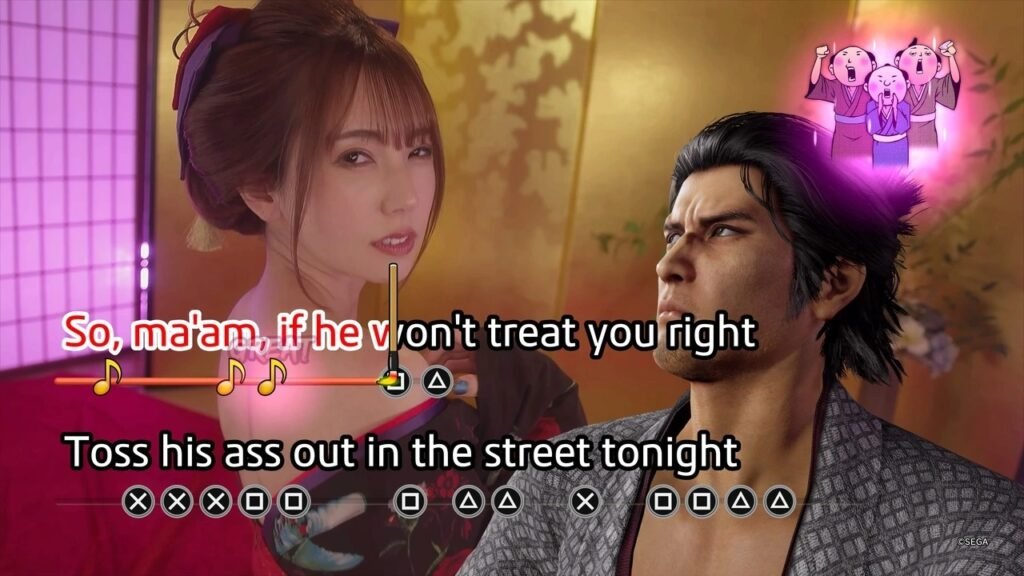 Quando você não está lutando ou assistindo a uma cena, pode experimentar a vida noturna e as atividades de lazer do Japão do século XIX. No verdadeiro estilo Yakuza, você pode perder horas com essas atividades paralelas. Os itens básicos estão lá – karaokê, mahjong, dança – mas você também pode apostar em corridas de galinhas, cultivar e cozinhar alimentos na surpreendentemente profunda missão secundária Another Life ou lutar em Battle Dungeons com recompensas aleatórias.