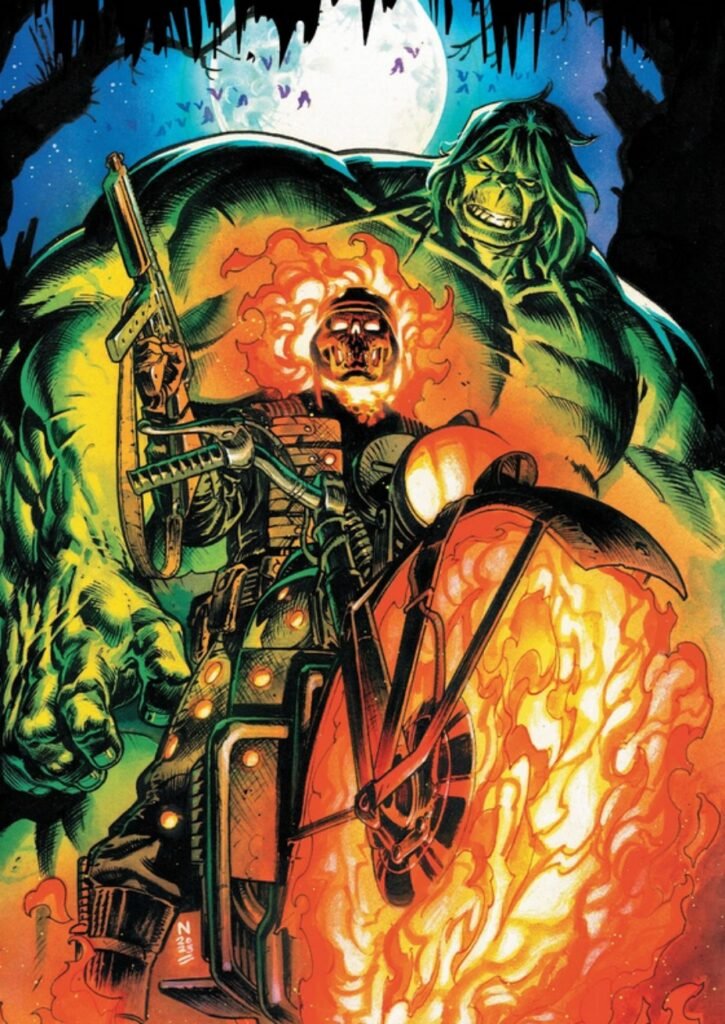 “Ghost Rider ’44 é definitivamente meu ator convidado favorito que apareceu em nossa série Incredible Hulk até agora”, disse o escritor Alien da Marvel em uma declaração. “Eu tinha uma história de origem totalmente realizada para o Sargento Sal Romero na minha cabeça antes do meu parceiro [Incredible Hulk] Nic Klein trazê-lo à vida com sua arte, e o personagem ficou tão incrivelmente legal e divertido, que sabíamos que o arco ‘War Devil’ não seria sua última aparição.”