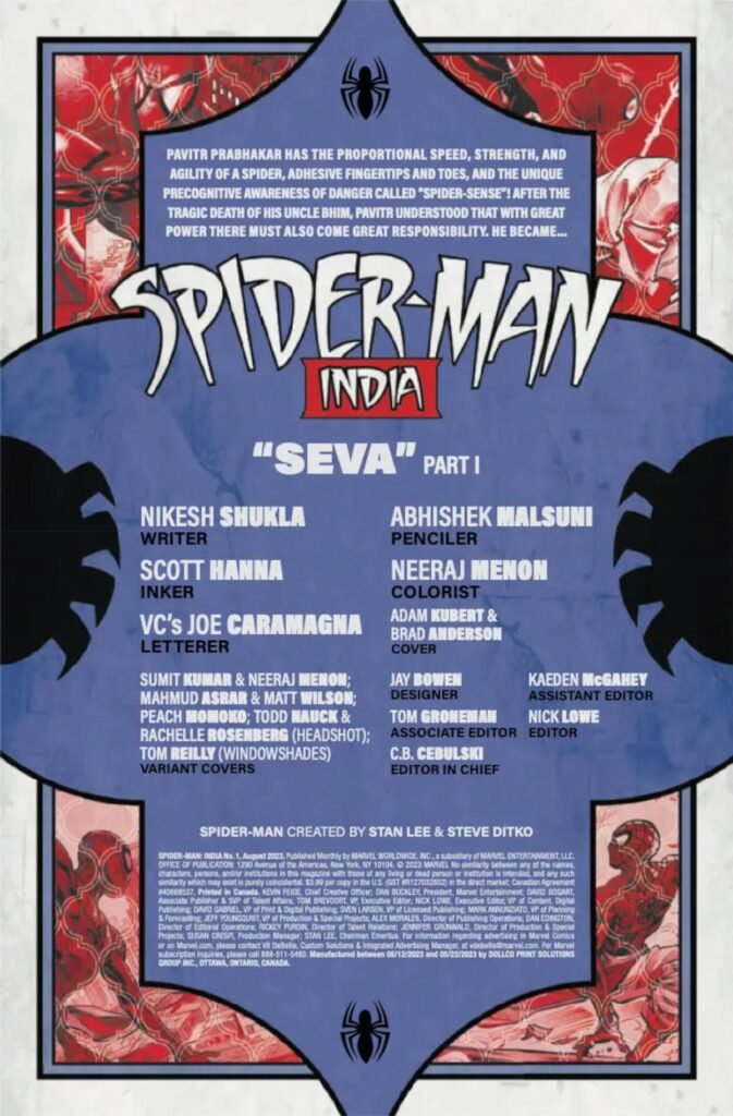 “HOMEM-ARANHA: A ÍNDIA RETORNA! Bem a tempo de seu grande papel na telona, Spider-Man: India retorna para sua primeira minissérie em quase vinte anos! Pavitr Prabhakar está de volta, fresco de “The End of the Spider-Verse” em seu próprio universo em Mumbai. Mas as coisas não são exatamente simples. Há um professor de ciências prometendo resultados, ativando o “cérebro de lagarto” das pessoas junto com um empresário implacável que pode ser mais do que parece… Não perca o lançamento do Personagem Aranha de 2023!