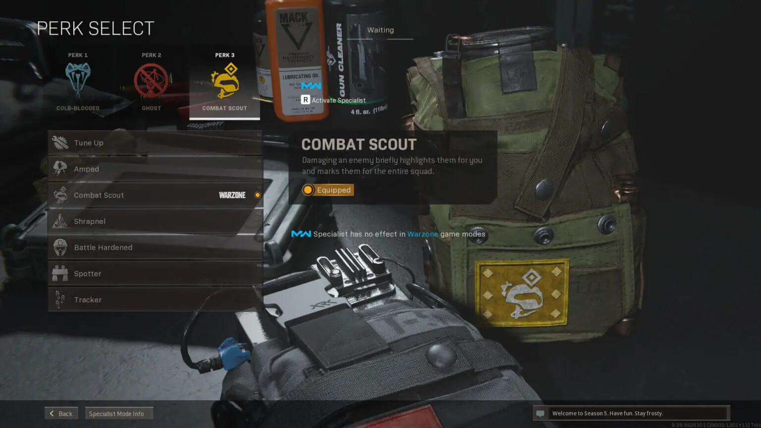 Em seguida, Overkill permitirá que você pegue outra arma primária ao lado do Vargo, e recomendamos o Owen Gun ou o MAC-10 . E, finalmente, o Combat Scout é perfeito para rastrear jogadores pela densa vegetação da Caldera.
