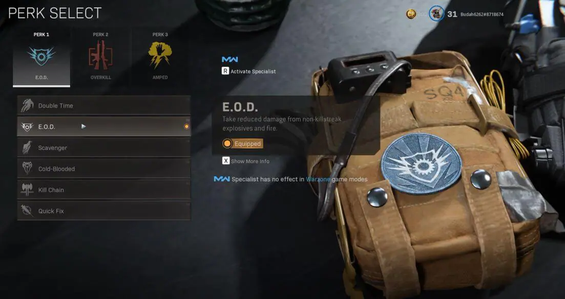 Ter proteção extra contra explosivos nunca é uma coisa ruim, então usar EOD permitirá que você não sofra tanta perda de saúde ao ser atingido por um Semtex ou C4. Quanto ao equipamento, a combinação Stim e Throwing Knife parece ser a principal opção na 3ª temporada, pois adiciona muita versatilidade ao seu equipamento.