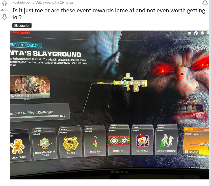 Dito isso, os jogadores não ficam muito impressionados com essas recompensas, como disse o usuário do Reddit ‘Dalvinyoung’: “Sou só eu ou essas recompensas de eventos são ruins e nem valem a pena ser obtidas haha?”