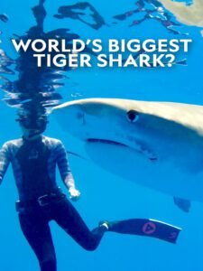 O biólogo marinho Kori Garza e o cinegrafista subaquático Andy Casagrande estão na Polinésia Francesa e na trilha de Kamakai, uma enorme fêmea de tubarão-tigre vista pela primeira vez por Kori há seis meses em um mergulho de pesquisa.