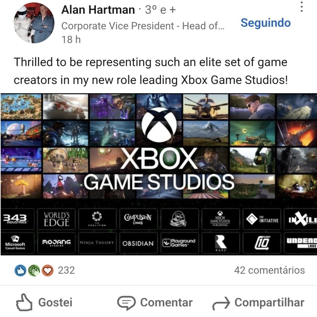 “Estou emocionado por representar um conjunto de criadores de jogos de elite em minha nova função de líder do Xbox Game Studios!” ele escreveu no LinkedIn .