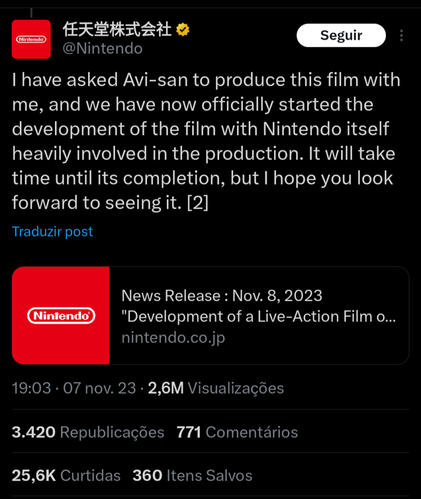 “Estou trabalhando no filme live-action de The Legend of Zelda há muitos anos com Avi Arad-san, que produziu muitos filmes de mega sucesso”, disse Miyamoto em uma declaração anterior . “Pedi a Avi-san para produzir este filme comigo, e agora começamos oficialmente o desenvolvimento do filme com a própria Nintendo fortemente envolvida na produção.