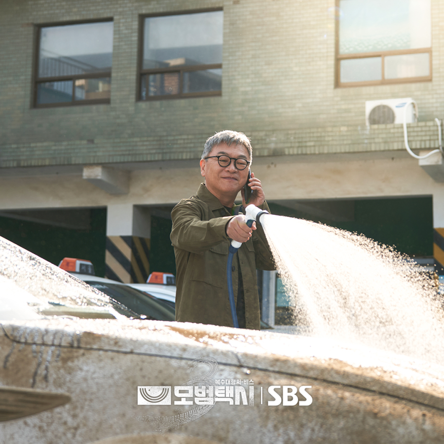 O CEO Jang, que também comanda a Fundação Bluebird, é retratado como um mentor dedicado e símbolo de liderança. As novas imagens mostram um momento tranquilo dele lavando os táxis na garagem — o que contrasta com o fato de o local servir como base secreta para operações de vingança.