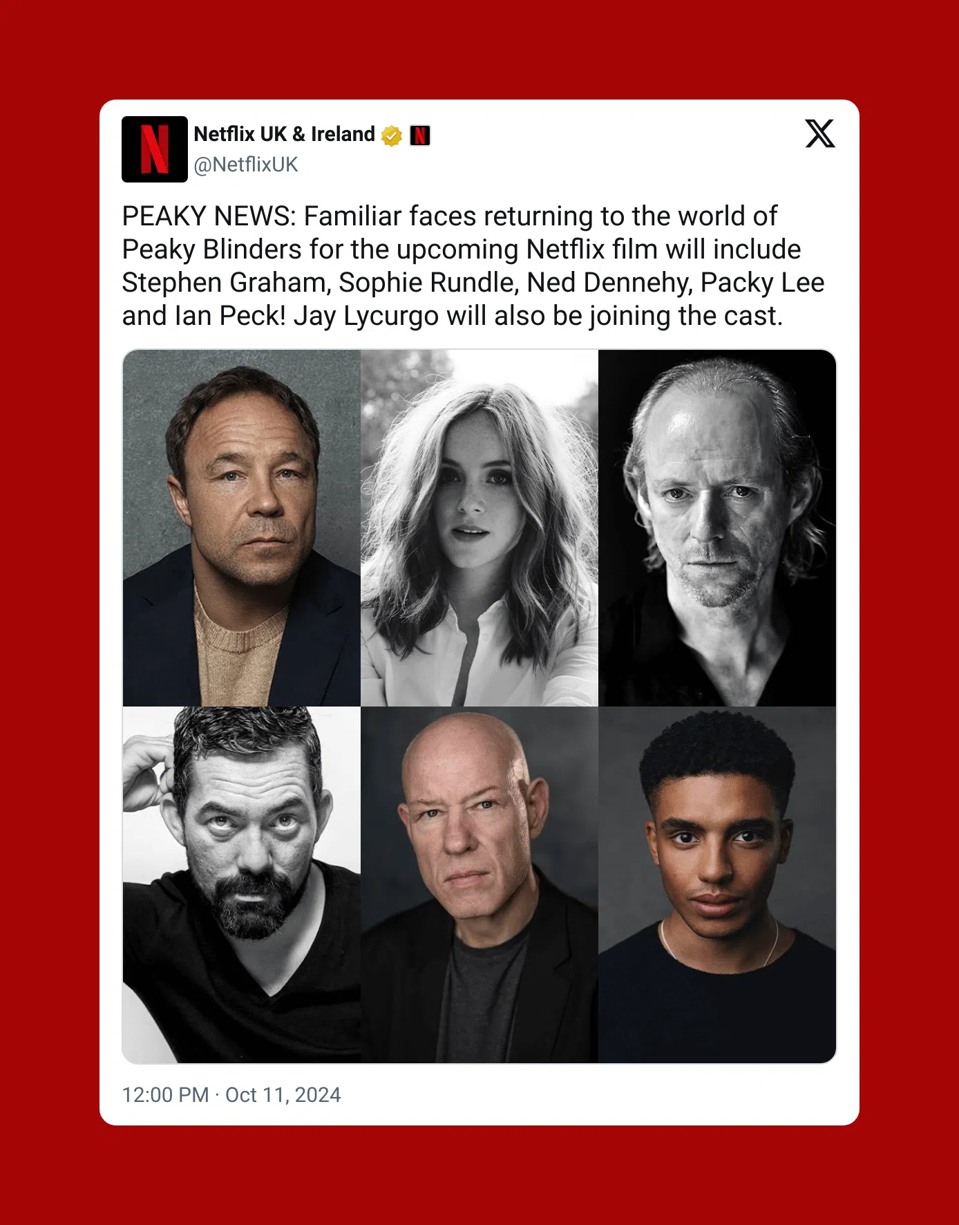 “Peaky Blinders sempre foi uma história sobre família. Por isso, é emocionante levar esse novo capítulo ao público mundial.”