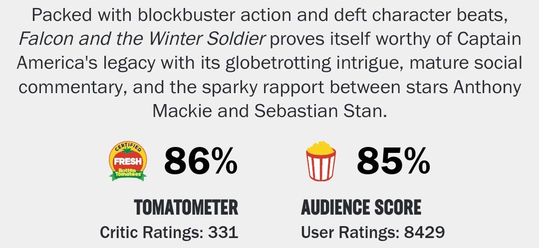 Na série do Disney+ Falcão e o Soldado Invernal, após receber o manto do Capitão América em Vingadores: Ultimato, Sam Wilson/Falcão (Anthony Mackie) luta para assumir o posto do herói. Ele se junta, então, a Bucky Barnes/Soldado Invernal (Sebastian Stan), embarcando em uma aventura mundial que vai colocar à prova as habilidades dos dois. Entre discussões e entendimentos, acompanhamos uma jornada no desenvolvimento da amizade entre ambos, ao mesmo tentam em que tentam deixar para trás os problemas do passado. Enquanto o Falcão sente a responsabilidade do escudo de Steve Rogers, Bucky tenta lidar com a própria culpa por suas ações enquanto estava sob comando da Hydra.