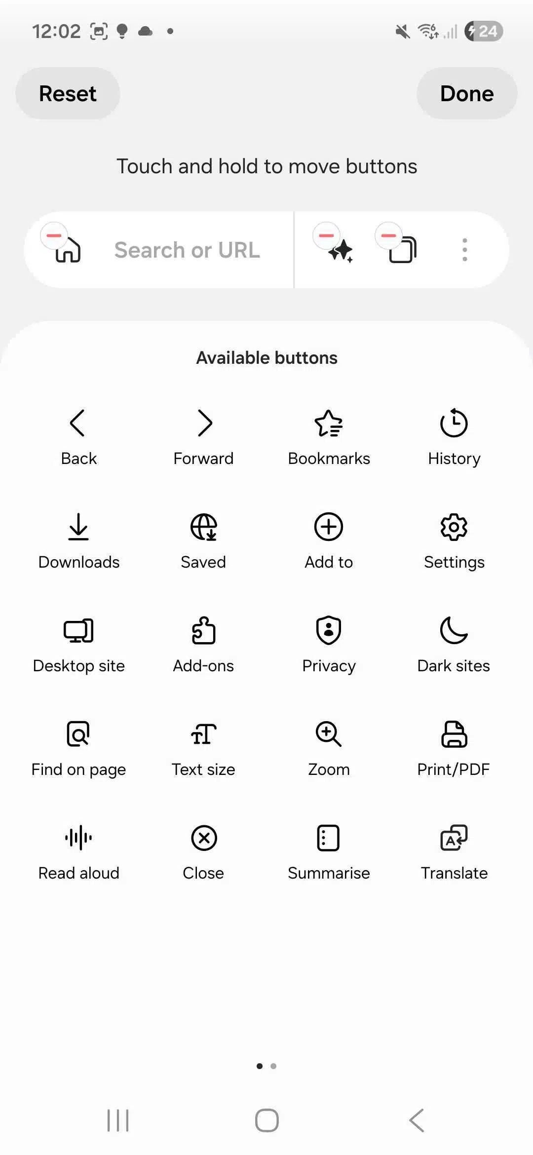 De acordo com vazamentos de @GalaxyTechie e @thatjoshguy69, a barra de endereços do navegador recebeu um visual elegante e com efeito de desfoque. Assim, ao rolar a página para baixo, a barra desaparece, liberando mais espaço para o conteúdo. Ela agora se divide em duas seções: uma para o URL e o ícone inicial, e outra menor para botões de acesso rápido, como Abas e Opções.