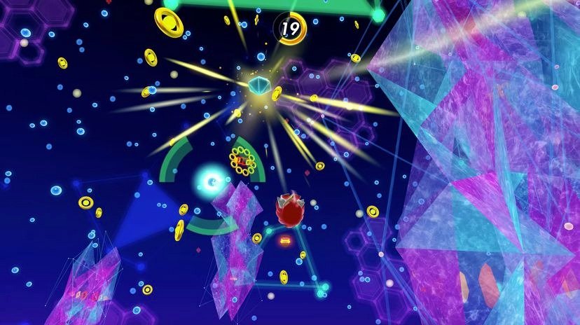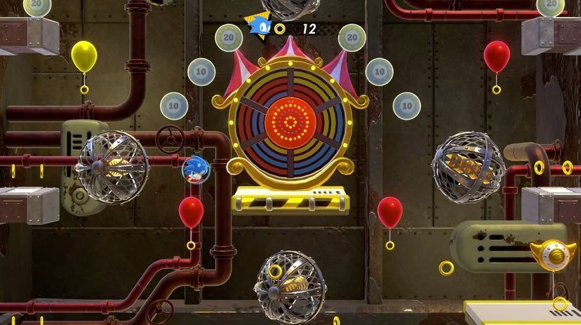Como você pode imaginar, em níveis normais encontramos monitores para quebrar e dezenas de anéis para coletar, que nos protegem de um golpe. É tradição que, ao recolher 100, aconteça algo especial mas, como aqui não há vidas, o que acontece é que recolhemos uma moeda especial, ao estilo do que aconteceu em Sonic Origins. Não é a única forma de obter estas moedas: existem algumas escondidas no cenário, também existem inimigos dourados que nos dão uma quando os eliminamos… E, claro, podemos aceder a fases bónus. Por um lado, se tocarmos num posto de controlo com 50 anéis, podemos entrar numa fase de bónus que lembra o primeiro Mega Drive Sonic: girando numa espécie de pinball, temos que chegar a três moedas. Existem novos elementos aqui, como botões que podem alterar o formato do palco. É um “subjogo” muito divertido, que fica complicado depois de várias rodadas.