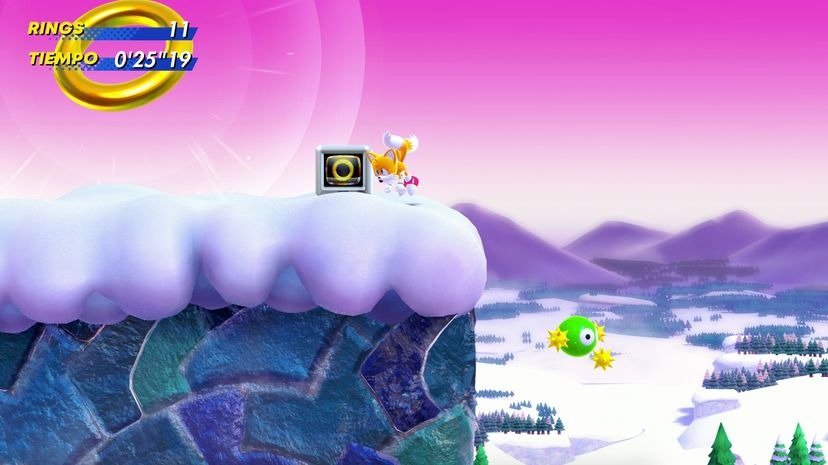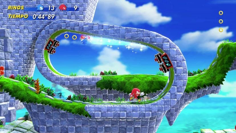 Os níveis, como dissemos, estão muito bem desenhados e ajudam tanto a explorar como a correr, embora talvez os temas habituais tenham sido demasiado reciclados (o casino, a zona aquática…). Em qualquer caso, existem secções que garantimos que irão surpreendê-lo. A trilha sonora tenta imitar os efeitos do chip Yamaha do Mega Drive em vários momentos e remixa samples que lhe soarão familiares de vários lançamentos, da era dos 16 bits ao Sonic Colors. As melodias não são tão memoráveis como em outros jogos e às vezes ficam um pouco repetitivas, mas têm aquele estilo clássico que é reconfortante. Cuidado com a decisão arriscada dos efeitos sonoros: não há voz digitalizada, nem mesmo quando você vê que, obviamente, há personagens falando. Mais uma vez procuramos emular as sensações dos jogos originais, sem mais artifícios. Em suma, este é um jogo cheio de acenos e homenagens à era clássica do Sonic, mas que tem personalidade e apelo suficientes para brilhar por si só.
