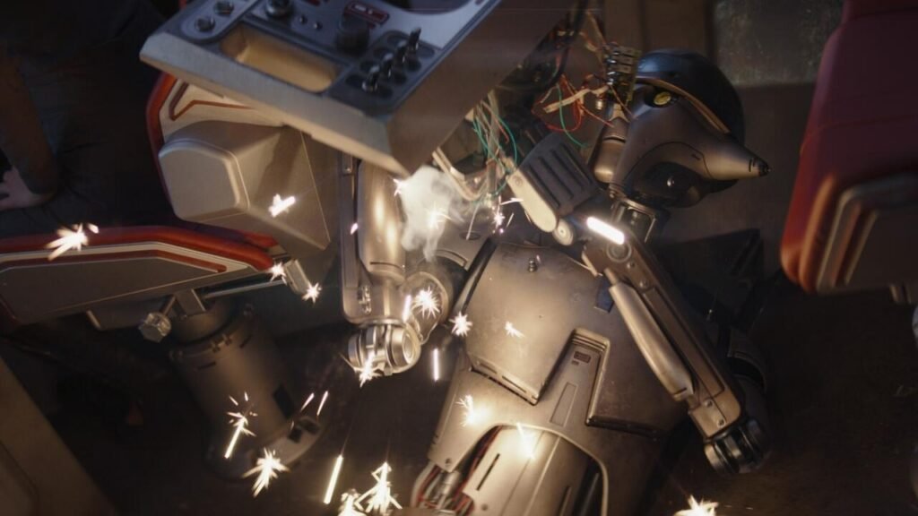 No início do episódio, temos uma cena muito tranquila de Huyang e Sabine consertando o navio enquanto Ahsoka avalia suas opções. A vibração geral desta cena, e a partitura musical que a acompanha, é absolutamente evocativa quando a Millennium Falcon pousou dentro do grande asteróide em O Império Contra-Ataca. É a primeira de duas cenas deste episódio que evocam uma grande cena de filme antigo.