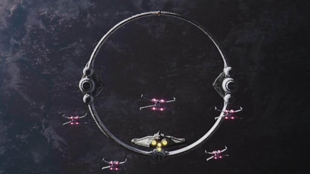 Quando Hera e seu pequeno grupo de X-Wings se aproximam do Olho de Sion perto do final do episódio, temos outra homenagem leve, com tomadas, edição e diálogos que ecoam a sequência onde os Rebeldes X-Wings e Y-Wings aproximar-se da Estrela da Morte no filme original de Star Wars. O que acontece a seguir é uma subversão esses lutadores não fazem nada, exceto serem derrubados quando o Olho de Sion salta para o hiperespaço.