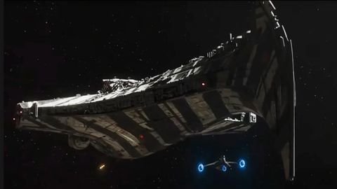 Há muito pouca filmagem da nave de Gorian Shard até agora. Nós o vimos apenas brevemente em “O Apóstata” e nos trailers da 3ª temporada, mas esse curto período de tempo foi suficiente para nos mostrar que provavelmente é muito menor em comparação com o Eclipse original, e também tem asas estendidas nas laterais. Parece extremamente fortificado, com turbolasers e torres ventrais, e precisa ter um hangar muito grande para acomodar tantos caças estelares.
