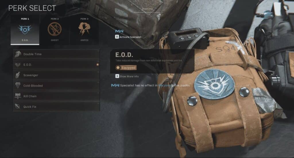 Os inimigos geralmente lançam granadas, termitas e outros explosivos em sua direção na Caldera, Rebirth Island e Fortune’s Keep, por isso recomendamos equipar o EOD para sua proteção contra danos explosivos.