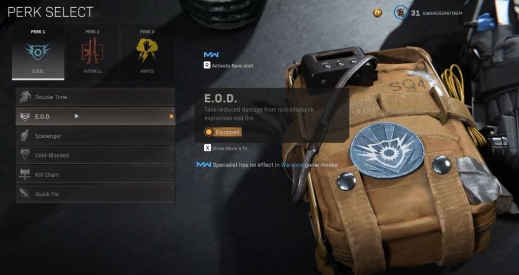 Ter proteção extra contra explosivos nunca é uma coisa ruim, então usar EOD permitirá que você acerte ataques de um Semtex ou C4. O uso de Overkill permitirá que você carregue Rifle de Assalto ou SMG além do ZRG, e o Amped garante a troca instantânea de armas.